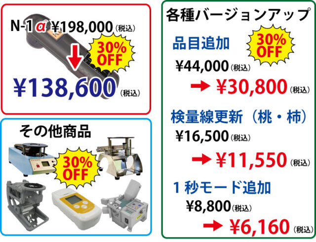 ・・・新商品 「よごれんくん」や屈折率式糖度計も3割引